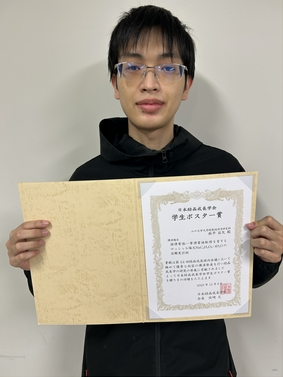 大学院創成科学研究科化学系専攻の新田恭之さん(西形研究室)が2024年日本化学会中国四国支部大会岡山大会にて学生発表賞を受賞しました